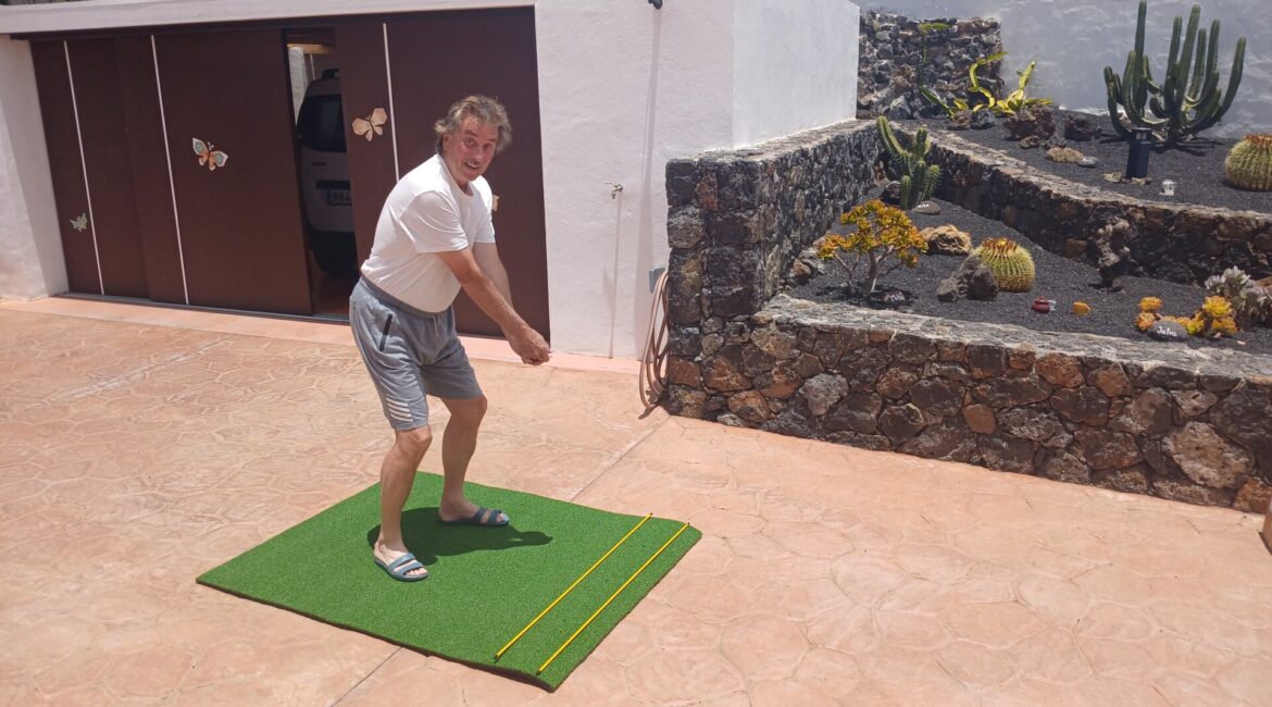 Jelikož dovoz veteránů – koníček časově, psychicky i finančně značně náročný – se moc neosvědčil (možná si ještě vzpomínáte na téměř tříletou anabázi s Chevroletem Camaro 🙈), Vr. se rozhodl porozhlédnout po něčem méně komplikovaném. Hledal a našel: začne hrát golf! A aby naše maxi zahrada konečně našla nějaké praktické využití 😂 – vybuduje si na ní driving range! Toto rozhodnutí učinil v únoru.
