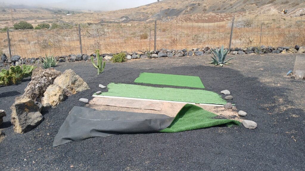 Nato mi Vr. vzteklým hlasem velkoryse nabídl, že si smím umělý trávník i golfový kobereček vzít a použít je na co chci 🤣. Na mé naléhání, že odhalená zemina bude fest zarůstat plevelem, zavezl během dalšího týdne driving range picónem.