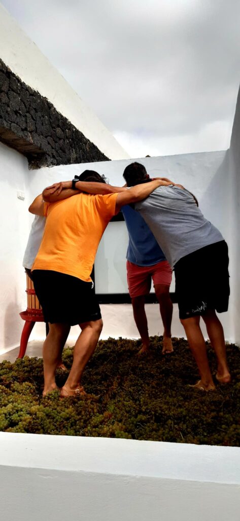 Toto maličké (zatím) nově vzniklé vinařství v Masdache nám přichystalo překvapení – potkali jsme tam našeho právníka Pepé Gonzálese 🤩, se kterým jsme před pár lety řešili několik problémů ohledně stavby domu a zlomyslností, které si pro nás přichystal šéf stavebního odboru Miguel. A Pepé nebyl ve vinařství jako návštěvník, ale jako majitel. A my si vzpomněli, že už tehdy ve své kanceláři v Arrecife se zmínil, že vlastní vinice v oblasti La Gería. A teď zřejmě přišel ten správný čas vyměnit kancelář za jamky s vinnou révou. Na první pohled bylo vidět, že mu čerstvý vzduch svědčí daleko lépe než šanony s právními normami.